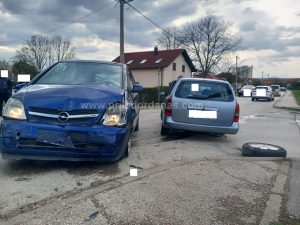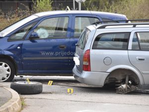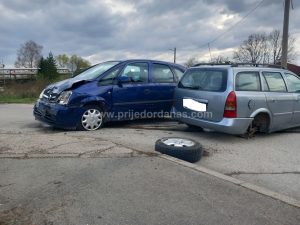 Na oba vozila je načinjena poprilična materijalna šteta a na jednom od njih otkinut zadnji točak.