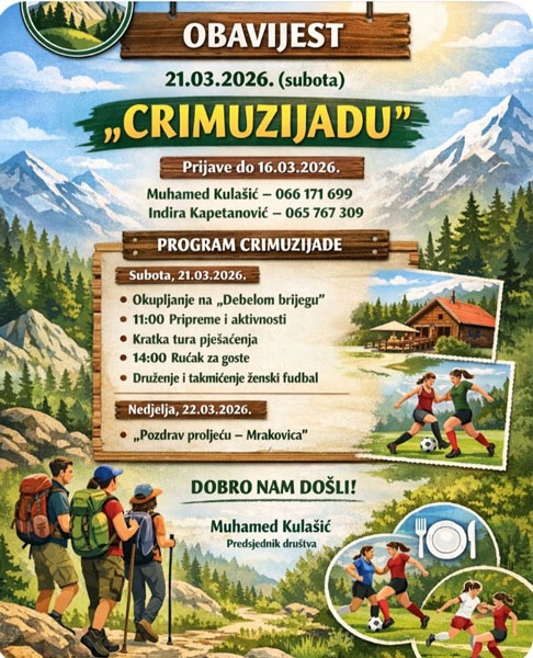 Planinarsko društvo “Mrakovica” Kozarac i ove godine organizuje tradicionalnu manifestaciju Dani crijemuže – „Crimužijadu“.