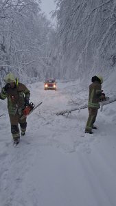 Evakuisano je šest osoba, dok intervencija probijanja puta prema Mrakovici i dalje traje, objavljeno je na Facebook stranici Vatrogasci Prijedor – Fire Station Prijedor.