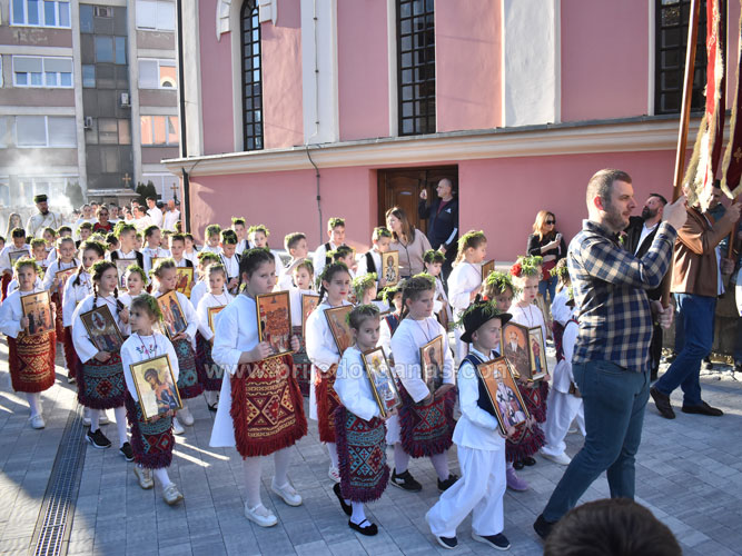 -Na Lazarevu subotu, kada je Gospod Isus Hristos ušao u Jerusalim gdje ga je dočekao veliki broj ljudi, djeca su pjevala “O sana Sina Davidovu! Blagosloven koji dolazi u ime Gospodnje.“ Djeca koja nisu propričala, tada su propjevala. U spomen na taj Veliki praznik, mi se ovdje ispred Hrama Svete Trojice okupljamo da proslavimo današnji dan, Lazarevu subotu. Poslije večernjeg Bogosluženja smo napravili trokratni ophod – rekao je protonamjesnik Dragan Hrvaćanin.