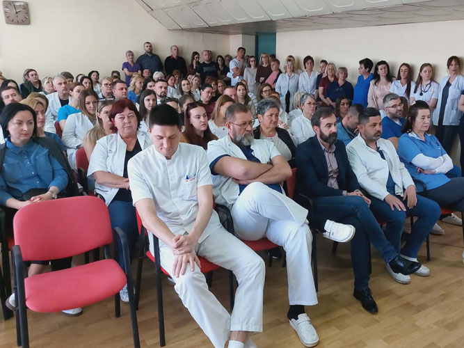 Uslovi rada u prijedorskoj bolnici su na kritično niskom nivou, kažu okupljeni radnici. Dodaju da je okupljanje samo početak borbe za ostvarivanje većih primanja i boljih uslova za rad.