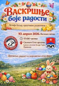 U organizaciji Etno društva “Srpski sokolovi Kozare” Urije-Prijedor u petak, 10. aprila 2026. godine biće organizovana manifestacija Vaskršnje boje radosti.
