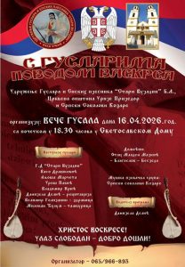 Udruženje guslara i srpskih pjesnika “Stari Vujadin” Banjaluka, Crkvena opština Urije Prijedor i Etno društvo “Srpski Sokolovi Kozare” Urije-Prijedor organizuju “Veče gusala” ovog četvrtka, 16. aprila 2026. godine.