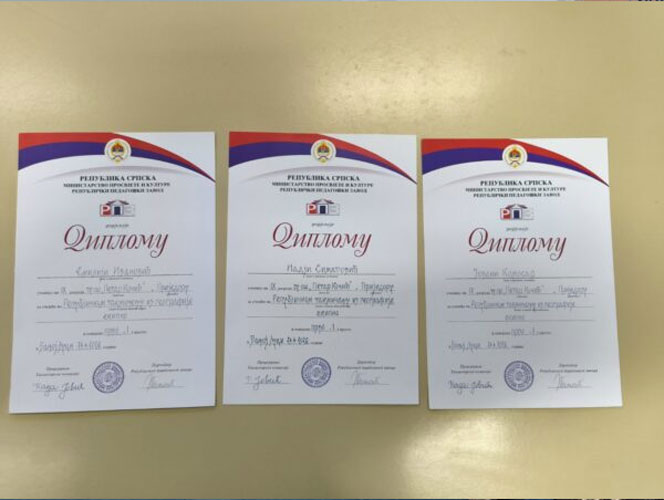 Ekipa je bila u sastavu Jovana Komosar, Nadja Simatović i Emilija Ivanović, sve učenice 9-3 razreda.