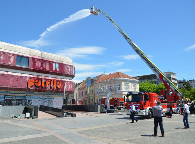 Na trgu u centru grada, osim novopredstavljenog vozila, bilo je parkirano i postojeće vozilo sa ljestvama – kako bi se vidjela ogromna razlika između opreme koja se trenutno koristi i one koja spada u najnovija tehničko-tehnološka dostignuća.