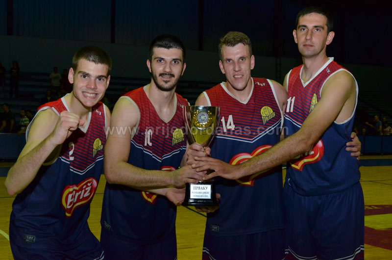 Kapitenu Dejanu Zlokapi pobjednički pehar za prvo mjesto u Prvoj ligi RS, uručio je predsjednik Košarkaškog saveza RS Boris Spasojević.