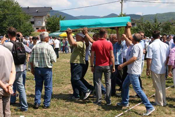 Zajednička dženaza i ukop posmrtnih ostataka osam prijedorskih žrtava Bošnjaka obavljeni su danas u Kamičanima kod Prijedora.