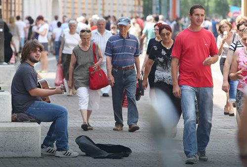 Šetnja Gospodskom ulicom u Banjaluci nezaobilazna je aktivnost zaljubljenih parova i turista, a poseban štimung daju joj ulični svirači.