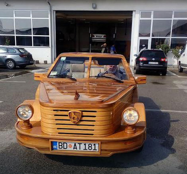 Priča da sa drvenim automobilom ima smešnih situacija, poput jedne kada je auto dovezao u autopraonicu, a radnik nije mogao da se načudi ovom čudu od auta. Rekao je da po prvi put pere drveni automobil i, naravno, želeo je odmah da se slika.