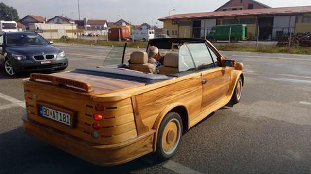 Vajar i slikar iz Budve Slavko Beronja pre desetak godina napravio je drveni automobil i dao mu ime „Krajišnik“.
