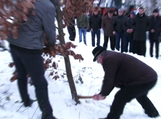 Sa tri udarca, usječen je badnjak u Ljubiji nadomak Prijedora. Čast je, ove godine, pripala Miletu Inđiću.