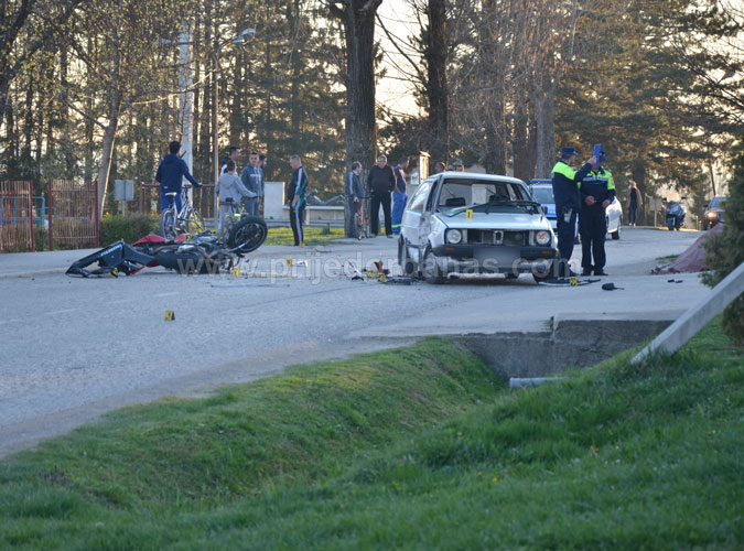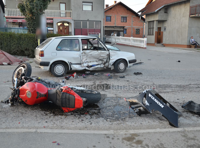 Kako nezvanično saznajemo, motocikl „Honda“ kojim je upravljao S.G. iz Prijedora kretao se iz pravca Pašinca prema gradu dok je putnički automobil „Golf“ išao iz pravca grada.