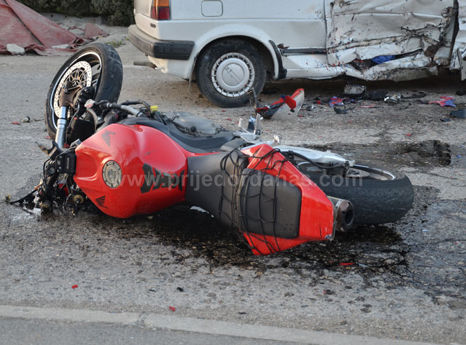 Prema riječima očevidaca, automobil je pokušao skrenuti pred obližnju trgovinu te je „oduzeo“ pravo prvenstva kretanja motoru koji se „zakucao“ u suvozačka vrata.