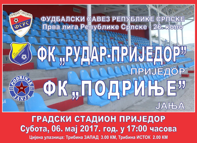 U okviru 4.kola Lige za prvaka Republike Srpske fudbaleri Rudar-Prijedora na Gradskom stadionu u našem gradu dočekuju ekipu Podrinja iz Janje.