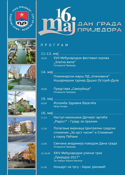 Dan grada Prijedora, 16. maj, i ove godine će biti obilježen i proslavljen nizom manifestacija koje će biti održane od 11. do 16. maja, potvrđeno nam je iz Gradske uprave.