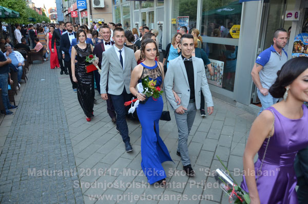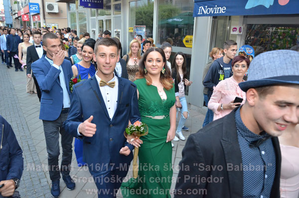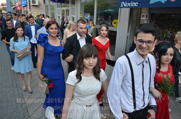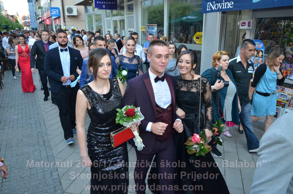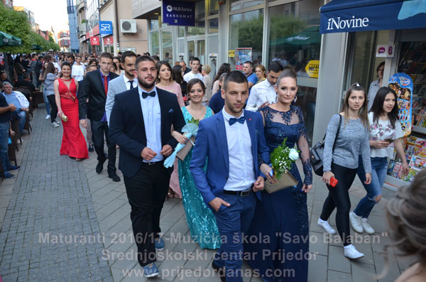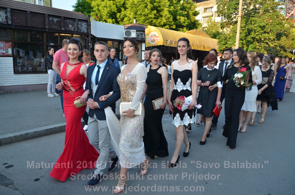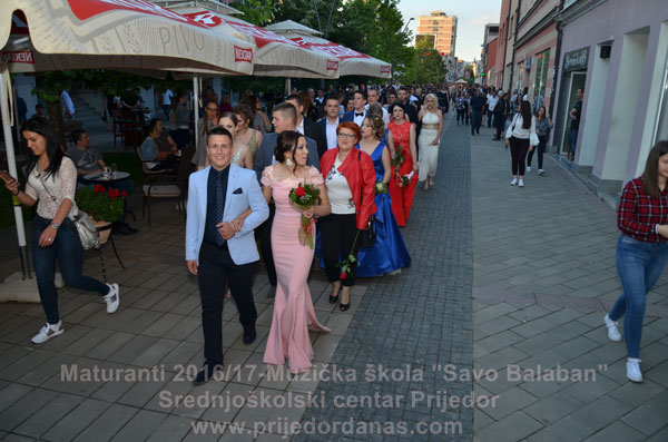 Poslije brojnih čestitki i fotografisanja za uspomenu sa roditeljima, rodbinom i prijateljima, ispred svojih škola, maturanti su prošetali glavnim ulicama našeg grada praćeni brojnim sugrađanima, da bi svoje slavlje nastavili u hotelu “Prijedor” uz Corona bend.