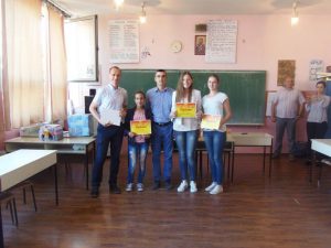 Predstavnik Ministarstva trgovine i turizma Dragan Milaković je uručio diplome a pobjedničkom timu i vrijednu nagradu za svoju školu u vidu multipraktičnog uređaja koji u sebi sadrži skener, štampač i kopir.