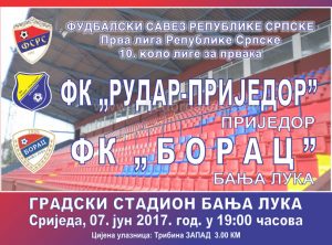 U posljednjem, 10. kolu Lige za prvaka, Prijedorčani će večeras od 19 časova na Gradskom stadionu u Banjaluci „ugostiti“ novog prvaka Borca.