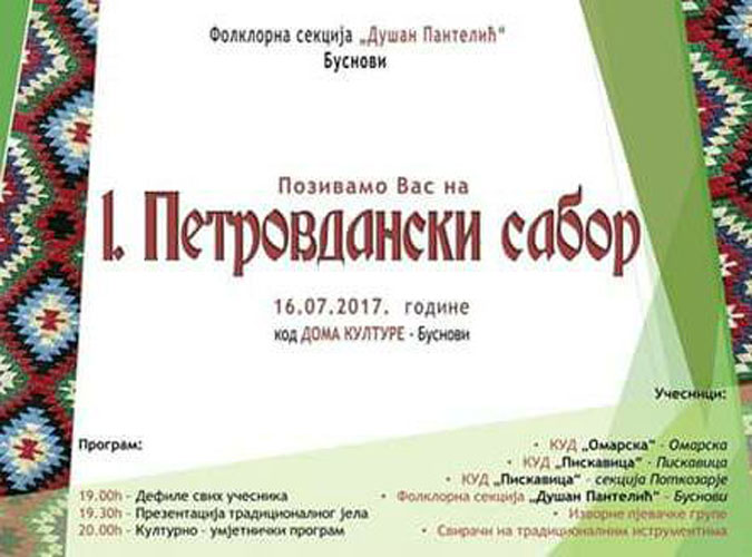 U organizaciji folklorne sekcije „Dušan Pantelić“ Busnovi, kod Doma kulture u ovom mjestu danas se održava 1. Petrovdanski sabor.