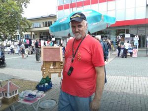 Boro Ostojić (50) iz Prijedora sa 70 odsto invalidnosti, poslednjih nekoliko godina zarađuje prodajom ručno izrađenih minijaturnih kućica i kokica u glavnoj gradskoj ulici.
