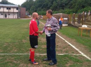 Prije početka susret kapitenu domaćih, ujedno i treneru, Petru Vrućiniću, pobjednički pehar za ovogodišnje osvojeno prvo mjesto u petoligaškom rangu, uručio je Milenko Tambić, generalni sekretar Područnog fudbalskog saveza Prijedor.