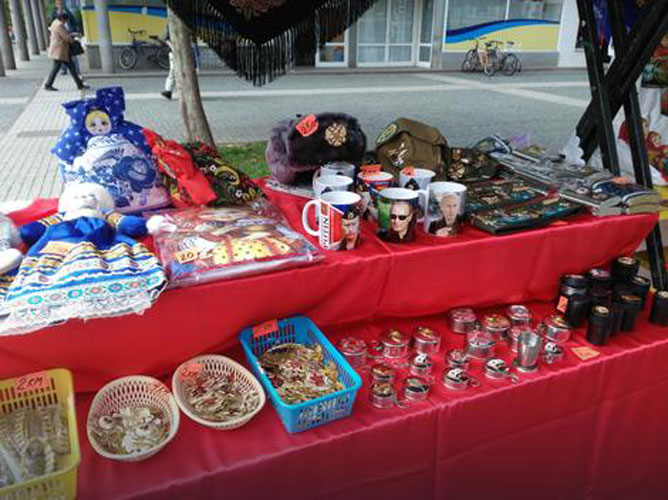 Brojne rukotvorine iz Sankt Peterburga kao i odjevni predmeti na sebi imaju lik ruskog predsjednika, Vladimira Putina, ali i ostalih političara koji su obilježili rusku istoriju.